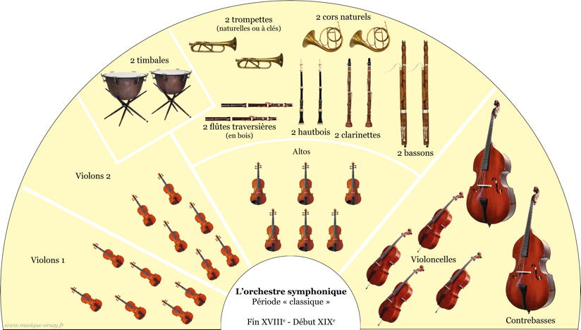 Très peu de changement. On renforce les effectifs. Parfois on rajoute un cor anglais, une clarinette basse, un tuba, quelques percussions (cymbales, triangle...)