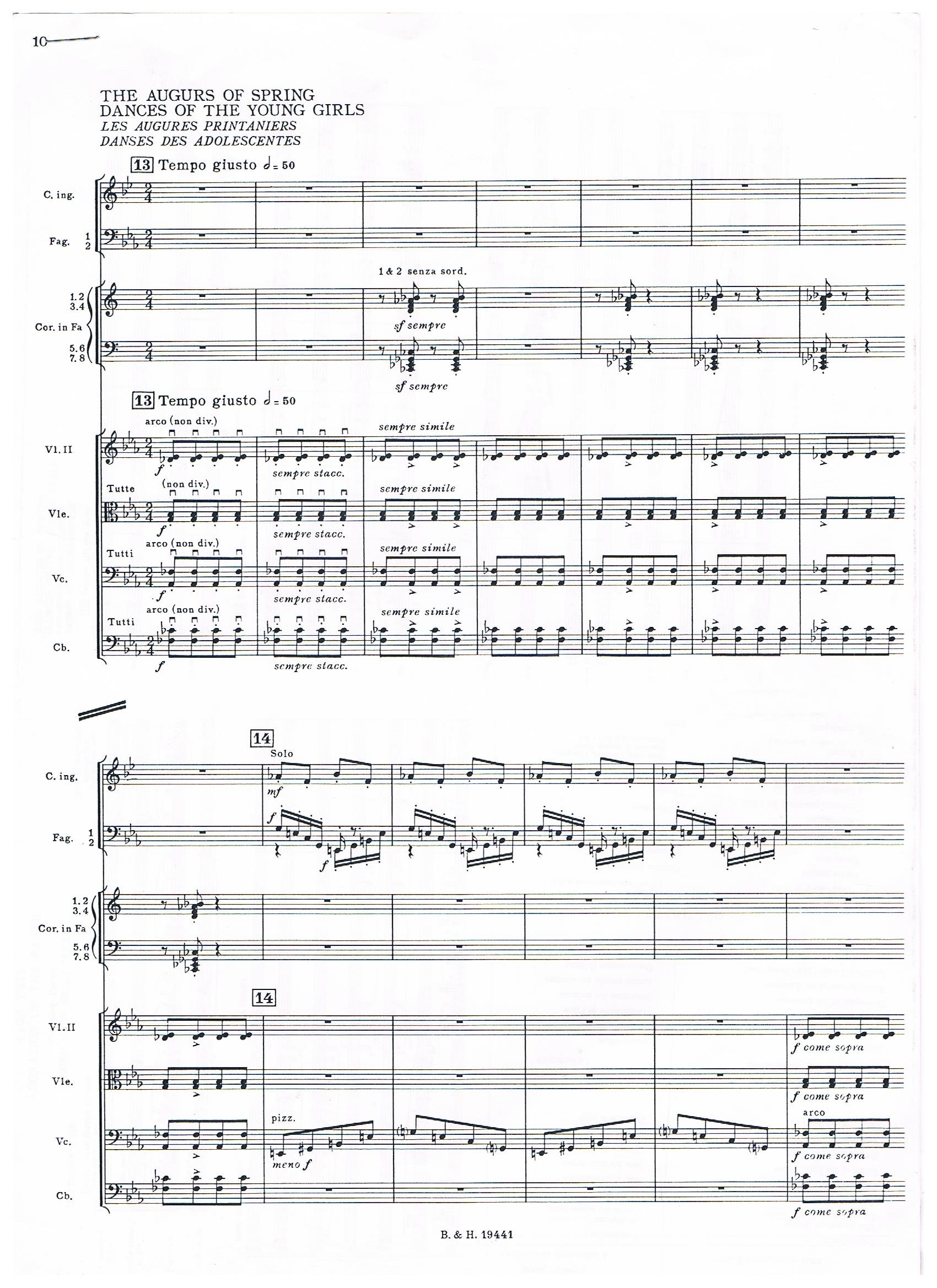 Quand Stravinsky écrit le Sacre, les deux précédents ballets qu'il a composé pour les Ballets Russes, "Petrouchka" et "L'oiseau de Feu", l'on déjà rendu célèbre. Mais il fait preuve ici d'une audace qui va nettement plus loin. La partition est d'une richesse, d'une complexité rythmique et harmonique tout à fait nouvelle.