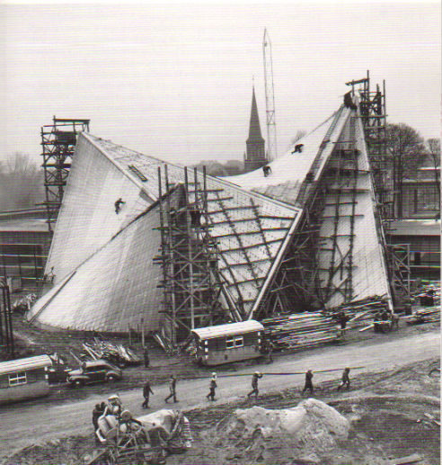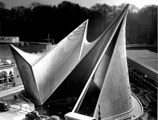 Le design est celui d'une tente à trois volets, construit avec des paraboloïdes hyperboliques, formes très à la mode chez un certain nombre de designers et artistes en arts visuels à l'époque.