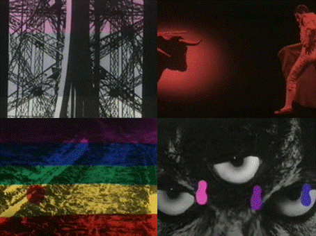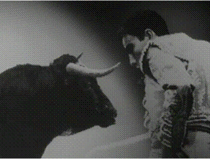 - Genèse : images de lumière colorée, un taureau, un matador, la tête d'une statue grecque, un film d'une femme souriante, puis reculant d'épouvante, un crâne.