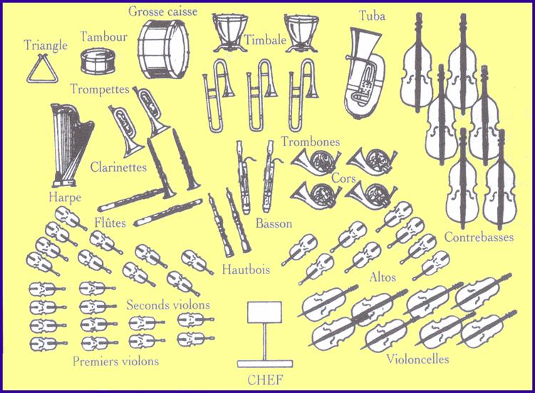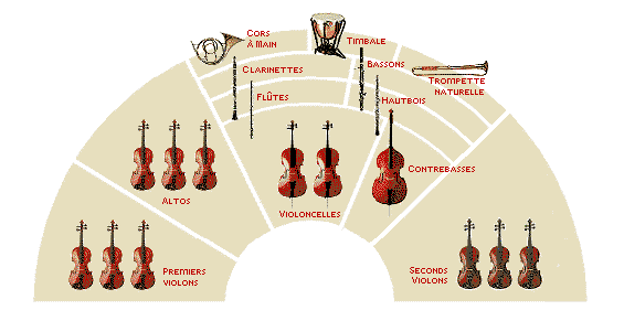 L’orchestre classique comprend de 35 à 45 musiciens. Pour l’essentiel des cordes :