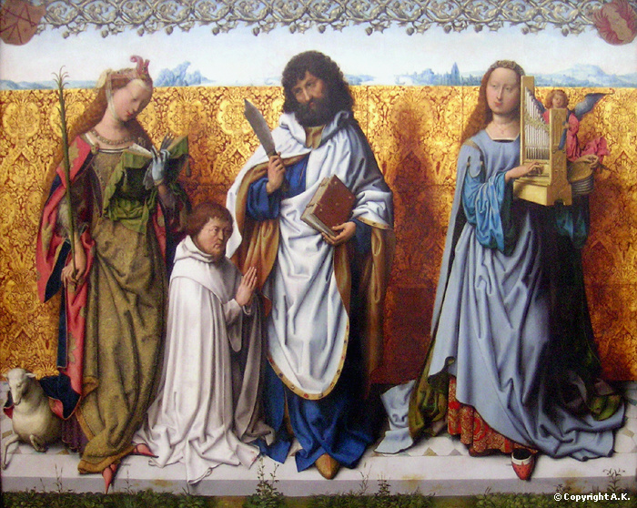 Sainte-Cécile joue du portatif (observez la main gauche qui pompe l'air !)
